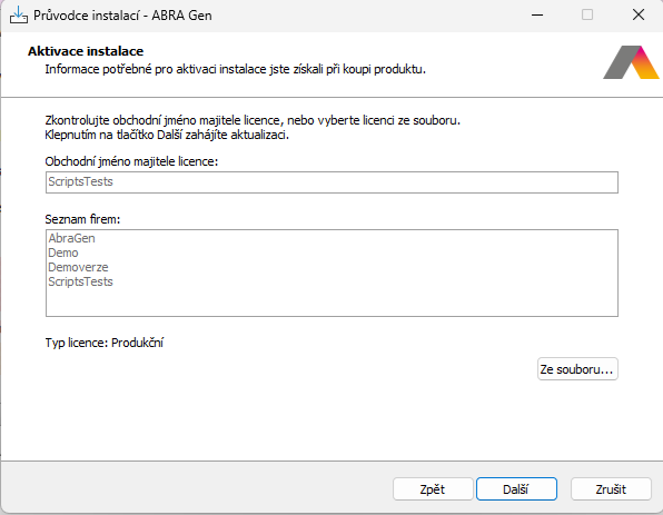 Instalace ABRA Gen - Nová ostrá instalace s licenčním klíčem