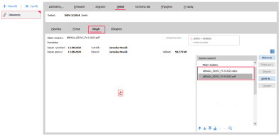 Po vytvoření ISDOC se přepneme na subzáložku Obsah, kde vpravo vidíme seznam dvou vygenerovaných dokumentů ISDOC a PDF. Když na ISDOC doklad klikneme, zobrazí se náhled ISDOC dokladu, pokud klikneme na PDF, zobrazí se ikona s PDF souboru.