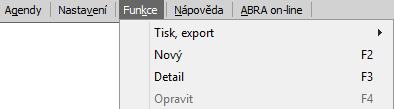 Platí, že všechny funkce dostupné v daný okamžik v menu funkcí nemusí nutně mít klávesovou zkratku, nemusí mít ikonu v panelu nástrojů ani nemusí mít adekvátní funkční tlačítko v panelu tlačítek.