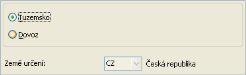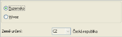 Položka typu přepínač, podle jehož nastavení se zpřístupňuje nebo znepřístupňuje k editaci druhá položka Země určení, v níž se pak zadává kód konkrétní země. Určuje, zda se vystavovaný doklad bude chovat jako doklad tuzemský či zahraniční z hlediska DPH: