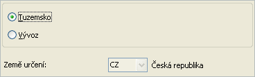 V tom případě se v dialogu pro typ obchodu u dokladů na výstupu vybírá Země určení s pomůckou Tuzemsko/Vývoz. Význam příslušných položek viz popis typu obchodu "0 - Nezadáno pro doklady na výstupu":