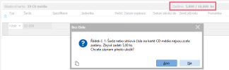 Položka je k dispozici pouze pro šarže. U sériových čísel k dispozici není, jelikož sériová čísla nelze zadávat v jiném počtu než 1. Naopak u šarží lze zadat libovolný počet a to i na desetinná místa. Maximální počet desetinných míst, na které je tuto položku možné zadat, se řídí vybranou jednotkou a jejím vztahem k 1, resp. jednicovým množstvím. Mezi počtem zadaným u dané skladové karty v záložce Obsah a počtem šarží/s.čísel je nastavena validace, která ověřuje, zda-li jsou šarže/sér. čísla zadány všechny, tj. jestli celkový počet šarží/s.čísel = počtu zadanému u skladové karty v řádku dokladu a to v odpovídajícím přepočtu, jsou-li použity násobné jednotky (které nemají vztah 1)! Pokud nejsou zadány všechny šarže/sér. čísla, program na nesoulad upozorní, doklad nicméně dovolí uložit. Validace není zcela restriktivní proto, aby bylo možné při velkém množství šarží/sér. čísel zadávat tyto šarže/sér. čísla na doklad po částech (tj. s meziuložením). Objasníme na příkladech: Příklad 1: Mějme kartu se sér.čísly s jednotkou ks (vztah=1) a dále násobnou jednotkou bal (vztah=5). Vyskladňujeme 1 bal. 1 bal= 5 ks, neboli 5 jednotek se vztahem 1 (jednicové množství). Tudíž v záložce Sériová čísla bychom měli zadat 5 sériových čísel. Jelikož sér.čísla lze z logiky věci zadávat pouze v počtu 1, měli bychom mít v záložce Šarže 5 řádků, tj. 5 sériových čísel. Pokud zadáme méně, systém nás na toto upozorní. Příklad 2: Mějme kartu se šaržemi s násobnou jednotkou bal (vztah=5). Vyskladňujeme 1 bal. 1 bal= 100 jednotek se vztahem 1 (jednicové množství). V záložce Šarže musíme toto množství rozpustit do šarží. V záložce Šarže můžeme mít buď jeden řádek, pokud všech 5 jednotek rozpustíme do jedné šarže, anebo teoreticky libovolné množství řádků, pokud 5 jednotek budeme rozpouštět do několika šarží např. po desetinkách jednotek: Příklad rozpuštění do 3 šarží. Pokud bychom zadali méně, systém by zobrazil varovnou hlášku. Příklad 3: Mějme kartu se sériovými čísly s jednotkou ks (vztah=1). příjemkou naskladňujeme 500 ks. V polovičce práce musíme práci přerušit. Tudíž příjemku uložíme. Až se budeme moci k zadávání sériových čísel na příjemku vrátit, můžeme doklad dohledat přes omezení za nezcela zadaná sériová čísla. Varovné hlášení o neúplném zadání sér. čísel. Položka počet u šarží se automaticky předvyplňuje počtem, který ještě z celkového množství zbývá rozpustit. Doklady, které nemají zcela zadány šarže, resp. sériová čísla lze dohledat přes omezení za Sériová čísla a šarže, které nebyly zadány zcela. Např. viz popis na Záložce Omezení Dodacího listu. |