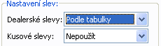 Příklad skrytých seznamů pro nastavení způsobu použití slev v editačním a needitačním režimu
