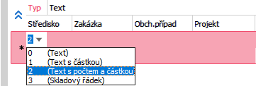 Není tedy nutno skrytý seznam rozbalovat, ale do položky "Typ" řádku zadat jeden z kódů 0,1,2 nebo 3.