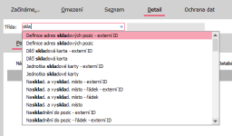 - agenda Definovatelné položky - výběr třídy na detailu