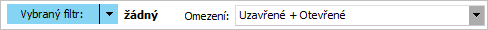 Příklad omezovacího/filtračního panelu v agendě Zakázky s žádným vybraným filtrem. Obsahuje tlačítko Vybraný filtr a dále combobox, kde je možné omezovat zakázky podle uzavřenosti