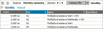 Příklad omezovacího panelu v agendě Skladové karty s vybranou oblíbenou definicí filtru Výrobky.