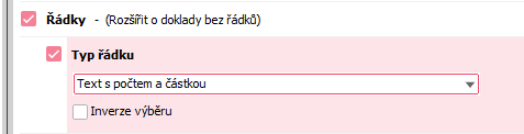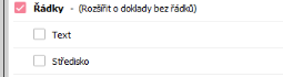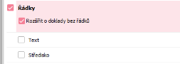 A jelikož došlo JAKOBY k zatržení prvku Řádky (i když vidět není), dojde i k předvyplnění prvku Rozšířit o doklady bez řádků podle firemního parametru.