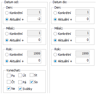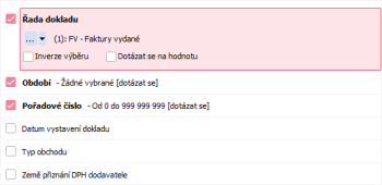 Pokud žádné omezení nenastavíte, bude výsledný seznam dokladů neomezený (resp. bude omezen pouze případnými přístupovými právy).