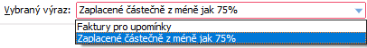 Příklad oblíbených omezení v seznamu agendy Faktury vydané.