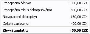 | Předepsaná částka | Tj. částka, na kterou byl aktuální placený doklad vystaven. |