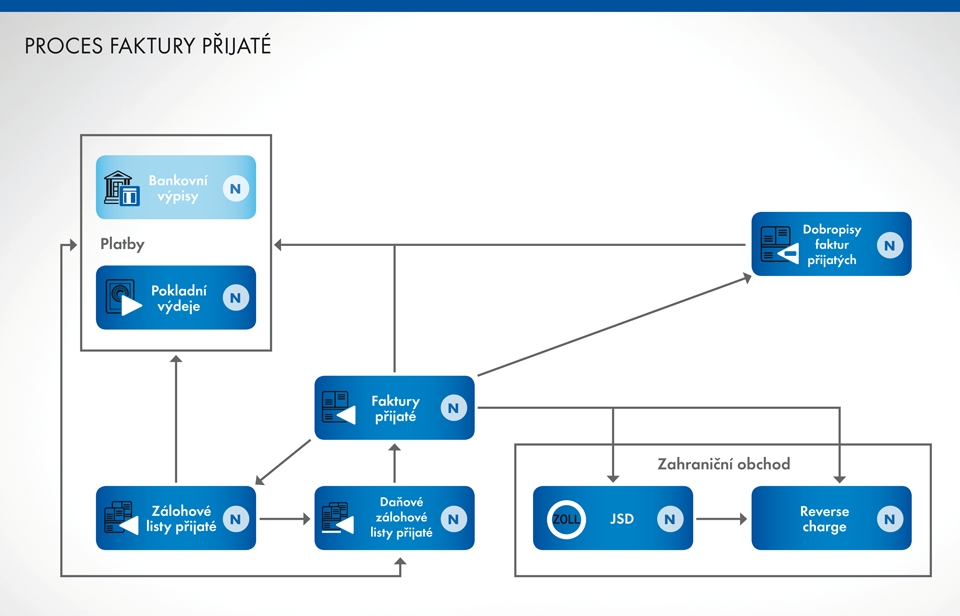 | Příklad jednoho z možných základních procesů faktury přijaté |