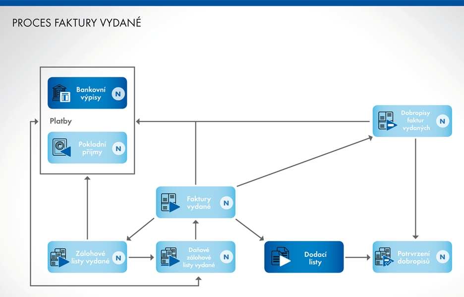 | Příklad jednoho z možných základních procesů faktury vydané |
