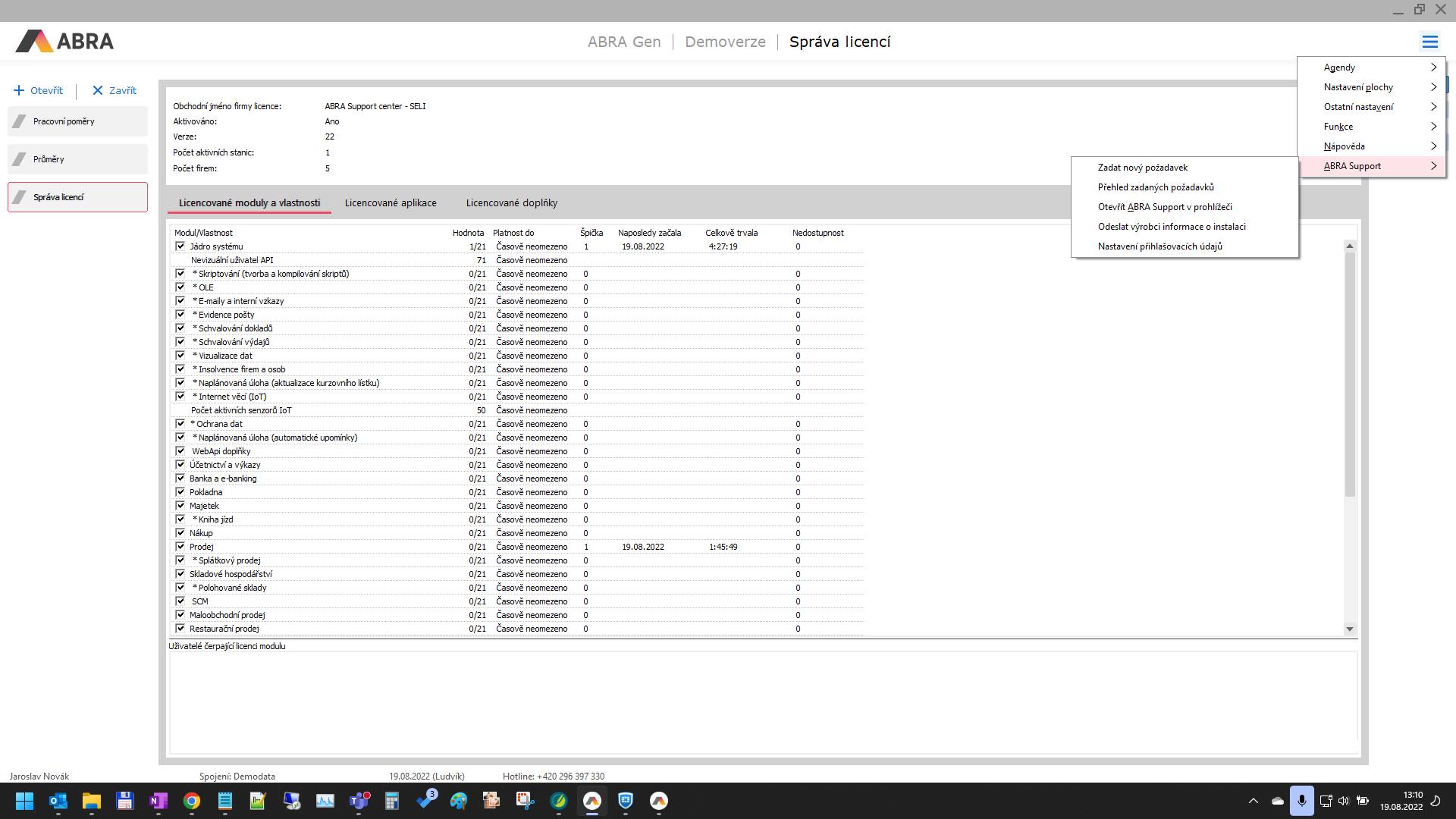 Zde je uvedena minimální konfigurace HW a SW, tj. HW/SW požadavky pro bezproblémový běh systému ABRA Gen pro klientské stanice a servery (aplikační, databázový atd.).