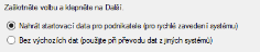 - Nahrát startovací data - Zatrhnete-li tuto volbu, bude nová instalace obsahovat tzv. startovací data pro rychlé zavedení systému. Jaká data a nastavení to konkrétně budou, viz popis startovacích dat dodávaný v rámci dodávky příslušného produktu. Data jsou optimalizována pro předpokládané uživatele daného produktu.