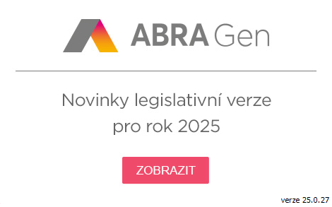 - Musí se jednat o lokální instalaci systému ABRA Gen pro Firebird(tj. v provedení ABRA Gen s daňovou evidencí resp. ABRA Gen s podvojným účetnictvím)