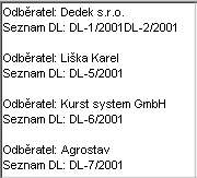 Pak může definice vypadat např. následovně, kdy se nejdříve vypíší z tabulky Dodacích listů všechny DL k dané faktuře (bez odřádkování), pak se vyhodnotí následující prvek Text (s prázdným textem a s nastaveným koncem řádku), který způsobí odřádkování za posledním vypsaným DL a nakonec další prvek Text (s prázdným textem a s nastaveným koncem řádku), který způsobí další odřádkování (tj. efekt vynechaného řádku):
