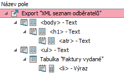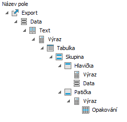 Výsledný soubor dle předchozí definice exportu Pokud nad prvkem Text vyvoláme funkci Posunout vlevo, prvek Text se "vynoří" a už nebude vnořen pod tabulkou. Bude vyhodnocován mimo záznamy z tabulky. Po úpravě pořadí (posunu nahoru), obdržíme: