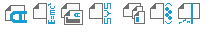 Panel nástrojů, pomocí něhož lze vyvolávat funkce okna editoru pro editaci obsahu definice def.exportu. Obrázek panelu je z důvodu úspory místa otočen o 90 stupňů.