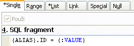 Pokud z nějakého důvodu není žádoucí opakovat celý WHERE fragment, opakující část se uzavře mezi značky /*FULLTEXT*/: