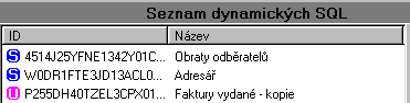 Ke každému programovému místu se v této části okna zobrazují přiřazené dynamické SQL z části Dynamické SQL. Každé programové místo může mít i více dynamických SQL. Grafickými značkami S a U je odlišeno, zda vazba na SQL je systémová nebo uživatelská (přidána uživatelem). Programová místa se využívají pro definici tiskových sestav pro dané místo programu (definice sestavy má vazbu na dynamický zdroj dat (DynSQL), který je přiřazen k danému programovému místu). Tedy v definici vlastností každé tiskové sestavy se vybírá, ze zdrojů dat (DynSQL), které jsou k danému programovému místu přiřazeny a které pak budou zdrojem dat pro danou tisk. sestavu.