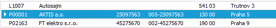 Příklad seznamu, kde aktuální záznam je AKTIS. Ukazuje na něj ukazatel a jelikož je v seznamu aktuálně i fokus, je modře zvýrazněn.
