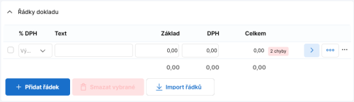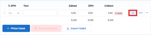 . V seznamu řádků se také zobrazuje púočet chyb, které v řádcích nastaly. Náhled chyb je dostupný v editaci řádků viz dále.