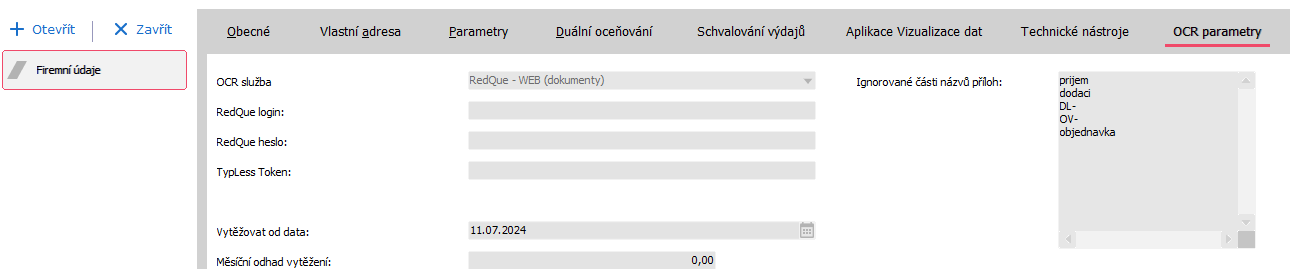 Pokud název přílohy obsahuje "zakázaný řetězec", které jsou vyjmenované v ABRA Gen, v agendě Firemní údaje - záložka OCR parametry - Ignorované části názvů příloh