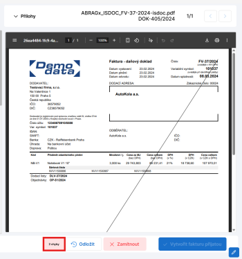 Tlačítko Náhled - Slouží k přepínání náhledu dokladu a přílohy.