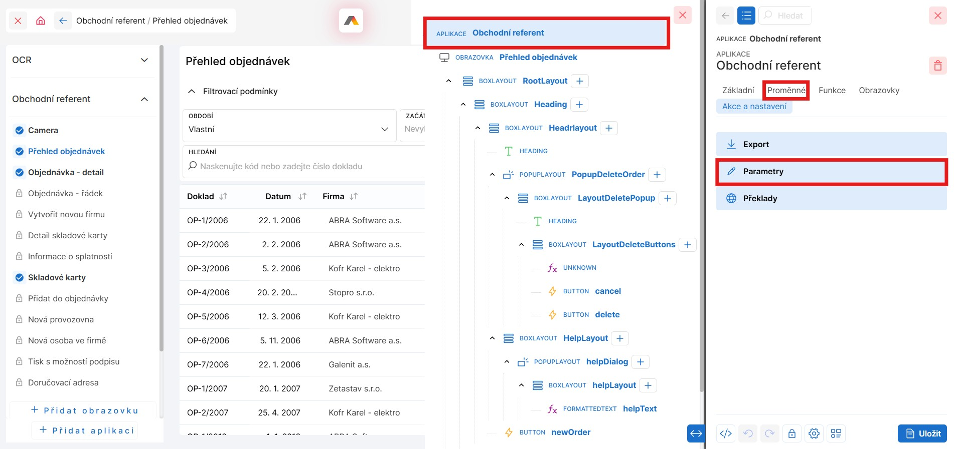 Konkrétní seznam parametrů je pak již včetně jejich popisu uveden přímo v konkrétních aplikacích ABRA Apps. Výhodou uživatelských parametrů je, že uživatelské parametry zůstanou zachovány i po aktualizaci aplikace.