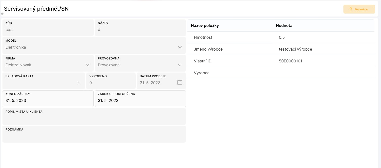 Obrazovka Předmět - detailní informace slouží ke zobrazení detailu servisovaného předmětu, skladové karty nebo skladové karty se sériovým číslem. To, čeho se daná obrazovka týká a jaké detailní informace zobrazuje, je dáno dle typu servisu, který se nastavuje již na hlavičce servisního listu.