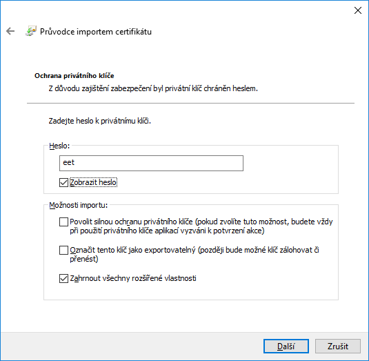 | Otázka: | Jaký je správný postup instalace certifikátu do Windows? |