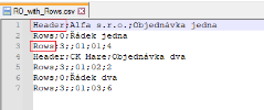 Jedná se o prvek editovatelný seznam, v němž je zobrazen seznam dosud zadaných řádků (na počátku prázdný). V definovatelných importech nelze obecně volit z různých typů řádků, jako tomu je např. u vlastní faktury. Seznam řádků se dělí na horní a spodní.