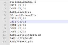 | Importovaná data | Kód | Název | Jednotka | EAN | Poznámka |
