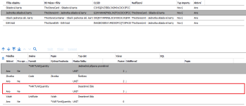 Seznam položek se aktualizuje při změně aktivního řádku v nadřízeném seznamu (viz horní seznam pro zadání tříd business objektů).
