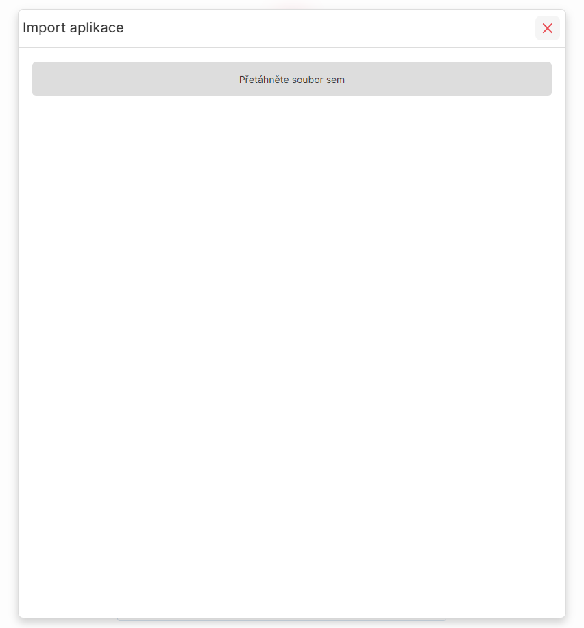 Okno pro import aplikace ze souboru. Soubor s aplikací stačí do tohoto okna přetáhnout