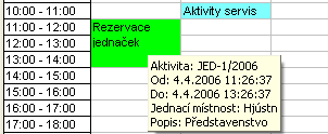 | Oprava aktivity | Dvojklik myší přímo v buňce časového plánu, pokud buňka není prázdná | Totéž jako funkce Opravit vyvolaná z panelu funkčních tlačítek nebo z menu (viz výše). Nabízí se pouze, pokud buňka již nějakou aktivitu obsahuje. |
