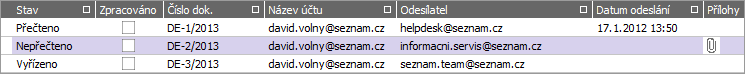 - jinou barvou - pro záznamy ve Stavu Nepřečteno