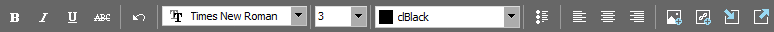 Toolbar dostupný v editaci obsahu e-mailu ve formátu Html nebo Text i html Význam ovládacích prvků je jasný z jiných html editorů. Fungují i základní všeobecně známé klávesové zkratky pro editaci html textů (jako např. Ctrl+B pro Bold písmo atd.). Zde popíšeme pouze následující: