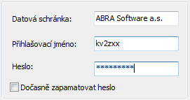 Pokud bylo přihlášení úspěšné a bylo zatrženo "Dočasně zapamatovat heslo", zadané přihlašovací údaje se pro aktuální účet zapamatují. Pamatování hesla je platné po celou dobu spuštění aplikace ABRA Gen. Je funkční jen pro přihlašování z aplikace (tj. pro ruční odesílání a aktualizaci v agendě Odeslaných e-mailů, ruční přijímání zpráv v agendě Doručných e-mailů, pro testování schránky v nastavení e-mailových účtů a pro vyhledávání datových schránek v Adresáři firem). Pokud se údaje zapamatují na jednom místě, jsou pak k dispozici všude, tedy pokud si uživatel dočasně uloží heslo např. při vyhledávání schránky, pak už nezadává heslo ani při odesílání zpráv.