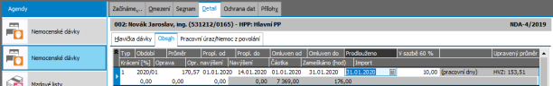 Položka Prodlouženo v agendě Nemocenské dávky (NDA)