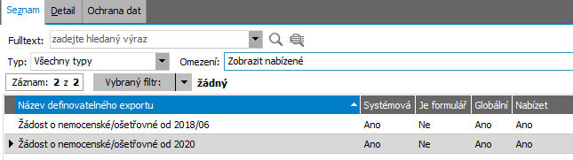 Export žádosti o nemocenské/ošetřovné v agendě Nemocenské dávky (NDA)