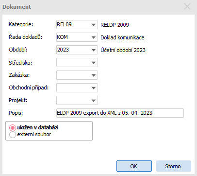 Pokud v předchozím kroku zvolíte možnost Vytvořit dokument, zobrazí se dialogové okno Dokument. Zkontrolujte, zda máte vyplněnou řadu dokladů a pokračujte stiskem OK.