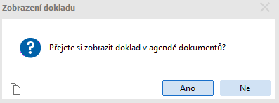 Na dotaz, zda si přejete dokument zobrazit v agendě dokumentů, odpovězte Ano, pokud chcete příslušný formulář reprezentovaný dokumentem rovnou odeslat ČSSZ. V opačném případě můžete dokument vyhledat v agendě a vyexportovat/odeslat kdykoli později.