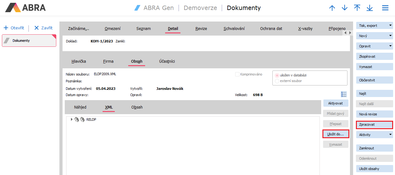 - vložit do agendy Dokumenty (DOK) a odtud následně: