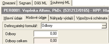 Příklad nového vstupního formuláře zobrazeného v subzáložce Mzdové údaje Souhrnného mzdového listu daného zaměstnance