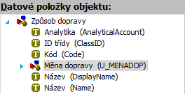 Je-li zatrženo, bude položka nadefinována jako Extra položka. Po uložení nelze opravovat. Pokud jste definici provedli špatně a ještě nemáte zadána data, pak položku smažte a nadefinujte znovu. Pokud k ní již data existují, pak máte možnost nadefinovat si novou extra položku a data si do ní nakopírovat funkcí Kopírovat data. Pozor! K některým třídám BO nelze definovat extra položky: