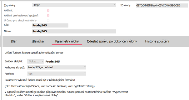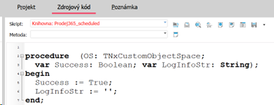Pro správnou funkčnost je nutné mít skript zařazen pod Druh skriptu: Agenda a vybranou Třídu objektu: Faktury vydané (IssuedInvoices). Kód automaticky získává ID aktuálně vybraného dokladu pomocí přetypování na TDynSiteForm.