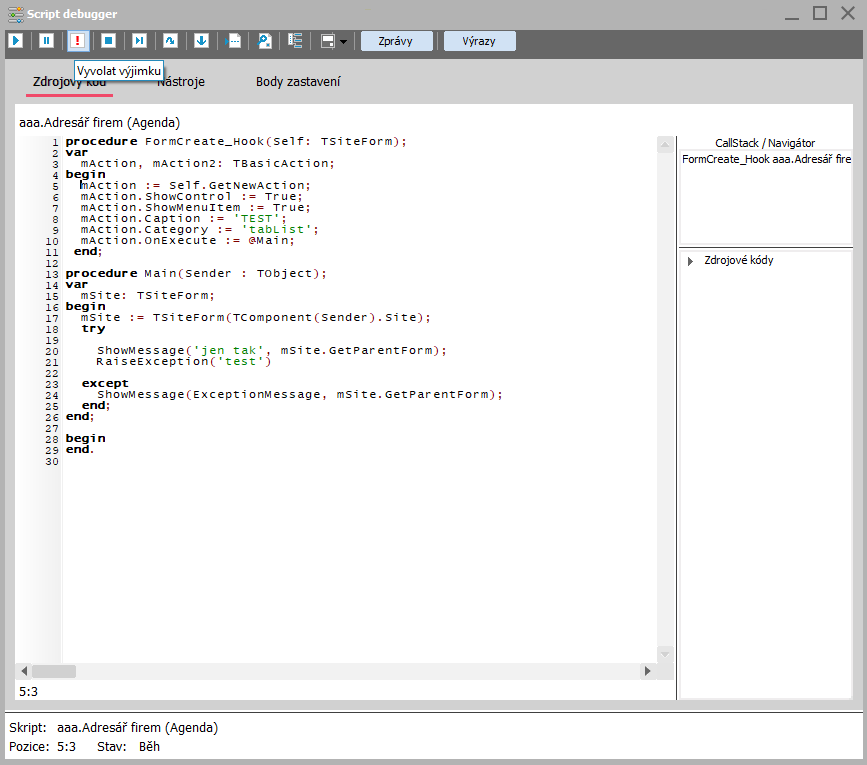 // Inicializační háček - přidání tlačítka do agendy