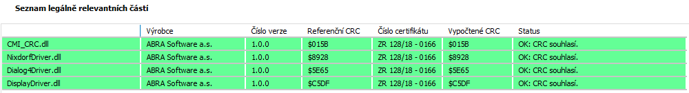 Ukázka přehledu zobrazovaného v agendě ČMI - Legálně relevantní části.